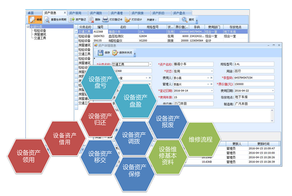 采用条码技术提升资产领用、盘点、维修、报废等管理效率;智能提醒确保资产定期保养;实现固定资产的全面监控和有效利用;一份资产数据管理多个帐套信息。