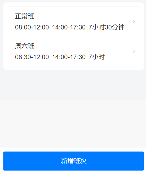 根据企业实际的班次安排,灵活创建自己班次,让不同的考勤人员安排到不同的班次中进行考勤打卡。
