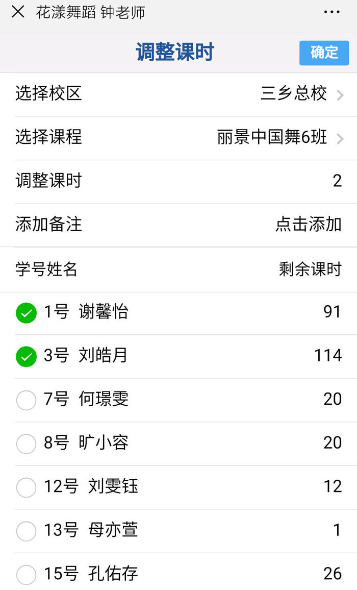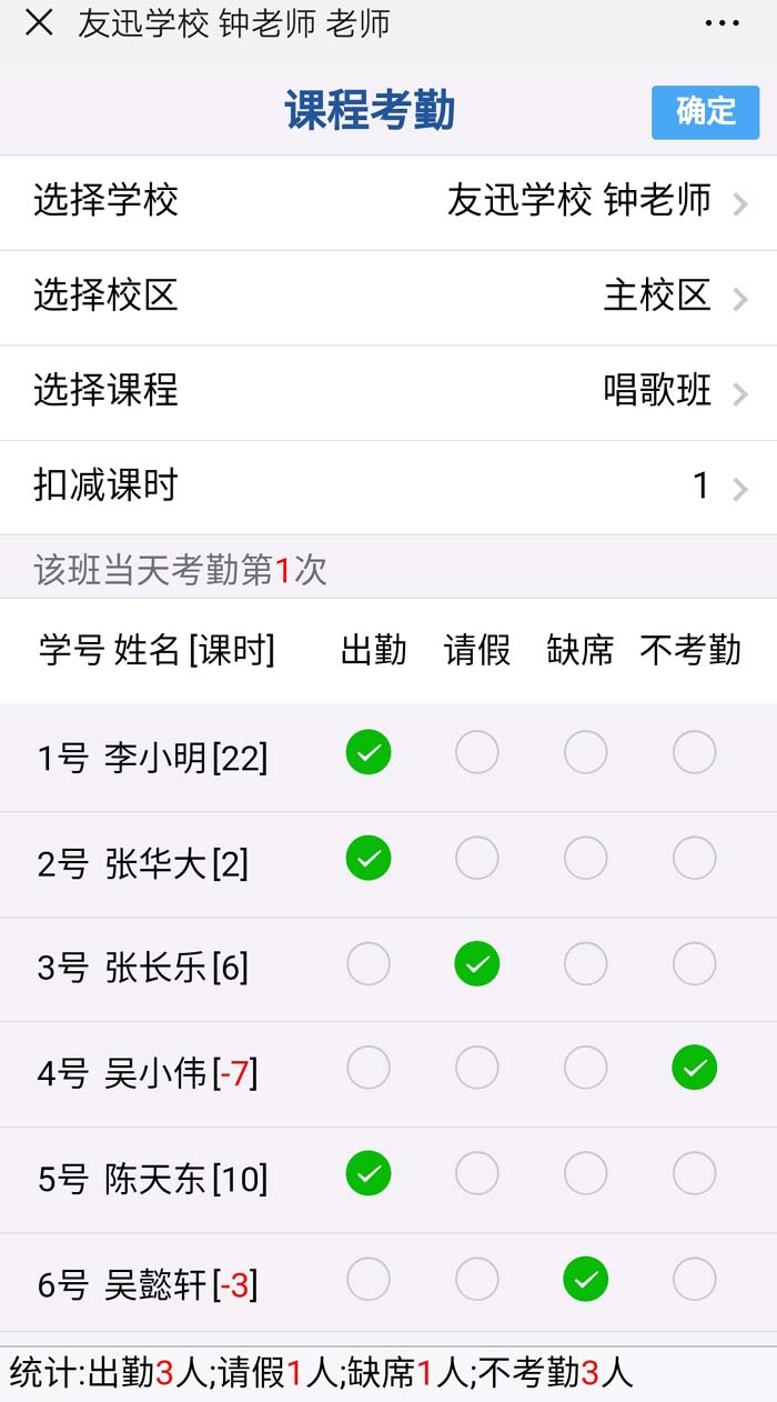 老师上课考勤,在手机上实现快捷点名并记录扣减课时。