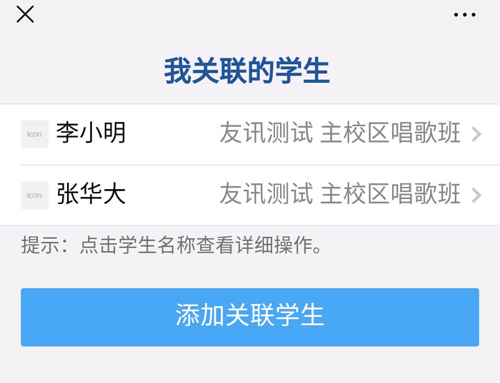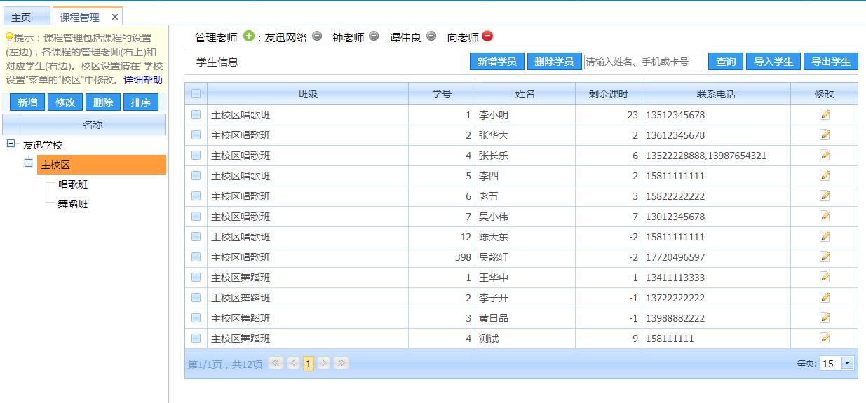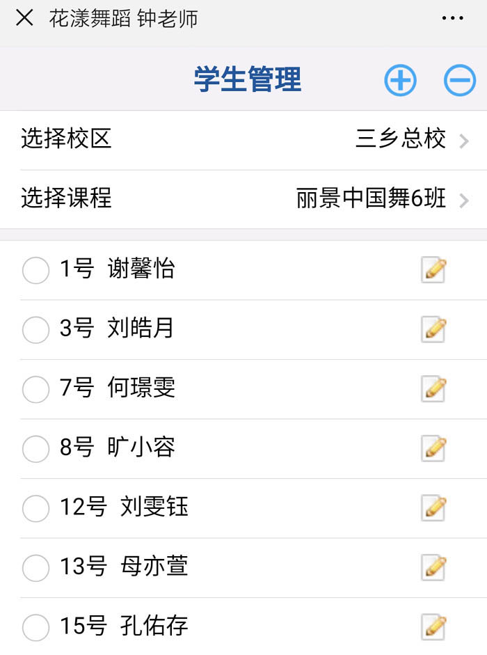 负责该班的老师,可在手机上增减学生或修改学生信息。